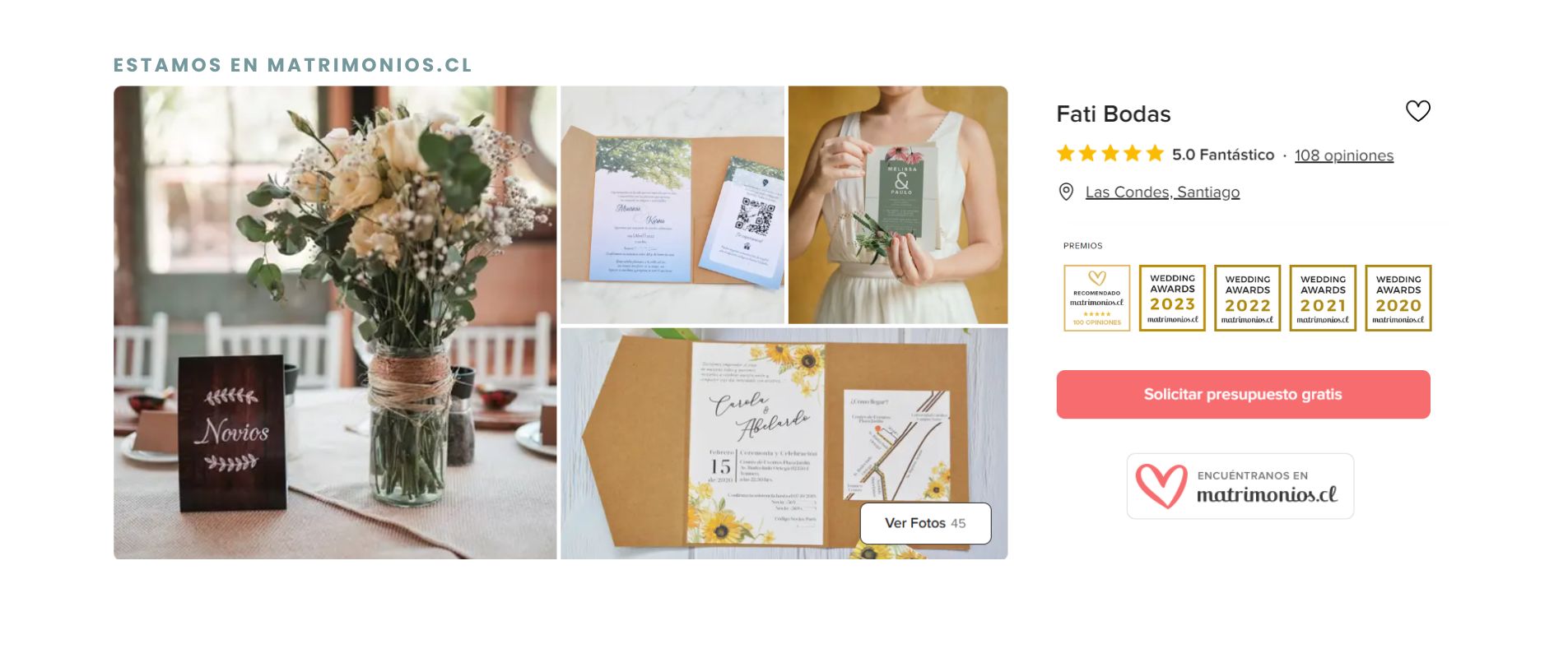 Fati Bodas (antes Celebrarte Diseños) es la empresa perfecta para personalizar las invitaciones de su matrimonio. Su amplia experiencia y dedicación hacen que cada una de las piezas que diseña sean totalmente originales, dándole el toque personal que buscan para ese evento especial e irrepetible con el que celebrarán su unión.